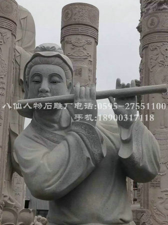 韓湘子:是一眉清目秀的年輕后生,頭扎布髻,身著長衫,手持竹笛。
