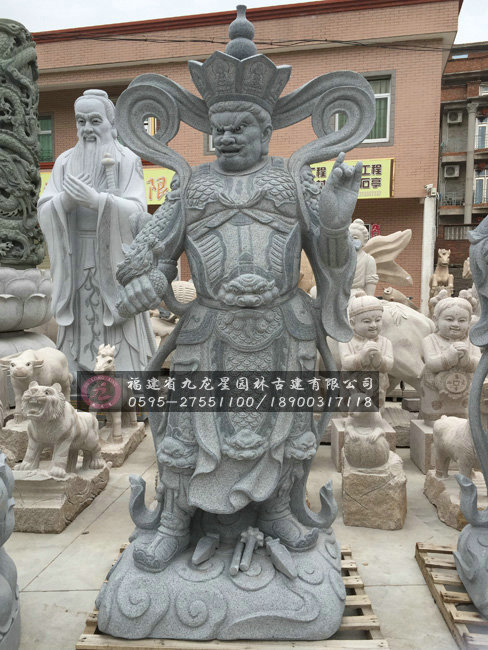 石雕四大天王采用優(yōu)等石材精雕細(xì)琢而成。整尊雕像身軀魁偉,氣勢威武,兩腿以半弓步橫跨在流云上,顯示出叱咤風(fēng)云,拔山蓋世的英雄氣概。