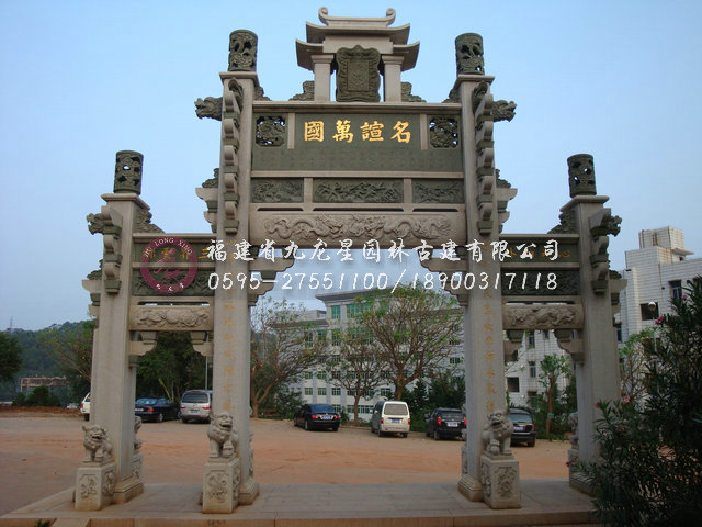 石牌坊又稱(chēng)石牌樓是一種石雕藝術(shù)的綜合體。它融合了各稱(chēng)雕刻形式,它不僅僅要求外形的美觀大方,同樣還需要有它獨(dú)特的內(nèi)涵,是美學(xué)與哲學(xué)的結(jié)合,同樣也是建筑與繪畫(huà),雕刻相結(jié)合。即便是修建簡(jiǎn)單的一門(mén)兩柱無(wú)明樓的石雕牌坊作品,在現(xiàn)在的雕刻行業(yè)里,浮雕技術(shù)常用的用線(xiàn)刻,鏤空和兩面雕技術(shù),為了讓石牌坊實(shí)現(xiàn)最大的雕刻效果,建議在不同的安裝場(chǎng)地,不同的圖案采用不同的雕刻技術(shù),在建造之前需要考慮到大量石材的選購(gòu),需要將每一塊石材按照設(shè)計(jì)圖紙進(jìn)行打磨,并打造成為某些特定大小和尺寸的造型,并根據(jù)石材出現(xiàn)在整體牌坊的位置對(duì)其進(jìn)行雕刻修飾,在每一塊石材制定好之后還要對(duì)石柱進(jìn)行整合定樁。同時(shí)并配上不同的其他紋理裝飾,例如在觀音廟的浮雕文化墻上可以設(shè)計(jì)上麒麟送子的浮雕,在政府機(jī)關(guān)里雕刻上威嚴(yán)正氣的麒麟圖案。