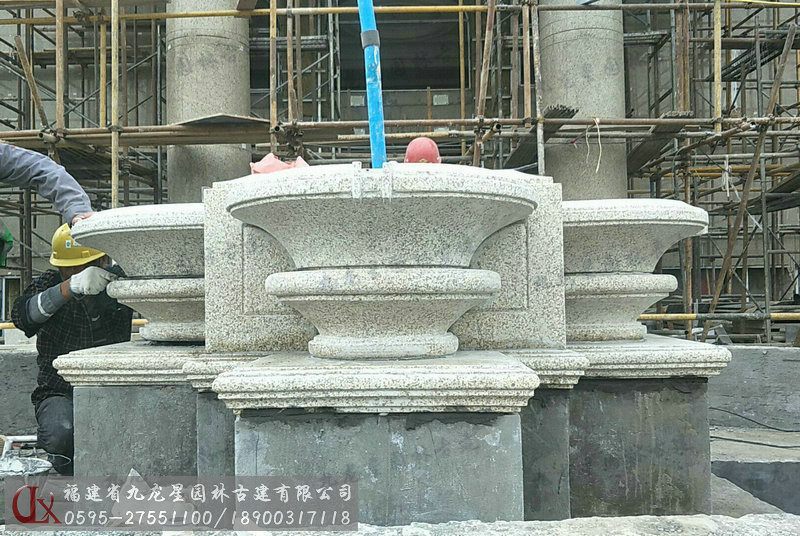 九龍星園林古建石雕水缽安裝:
