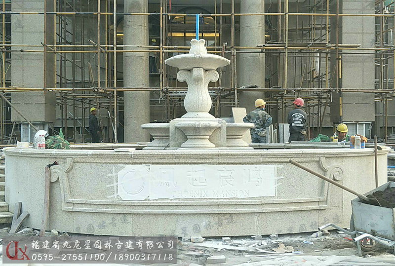 黃金麻水缽噴泉安裝效果圖