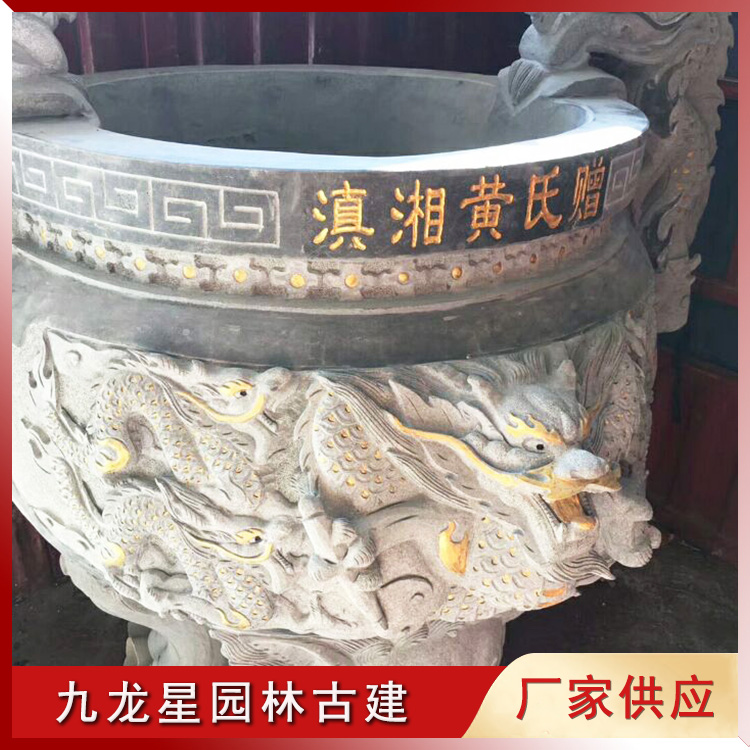 香爐石雕 圓形九龍石雕香爐發(fā)貨 祠堂祭祖用