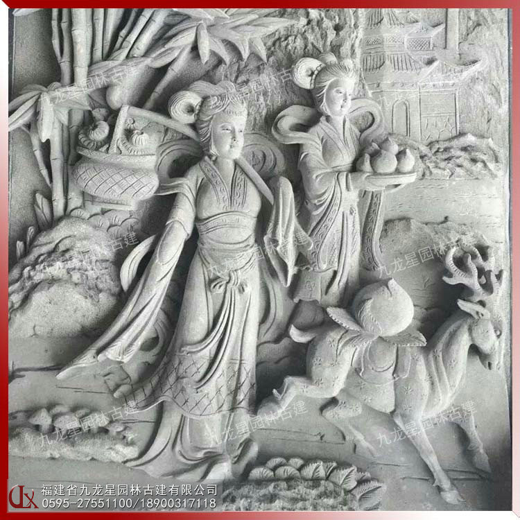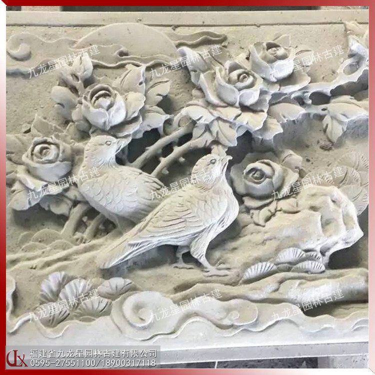 九龍星園林古建浮雕題材:生活風(fēng)俗、神話故事,諸如吉慶有余、五谷豐登、龍鳳呈祥、平安如意、八仙祝壽、松鶴延年 、太平有象、鹿竹同春、五福臨門、喜鵲登梅、丹鳳朝陽等適用于寺廟浮雕、祠堂浮雕、建筑迎門墻、景區(qū)戶外大型建筑外墻石材浮雕。