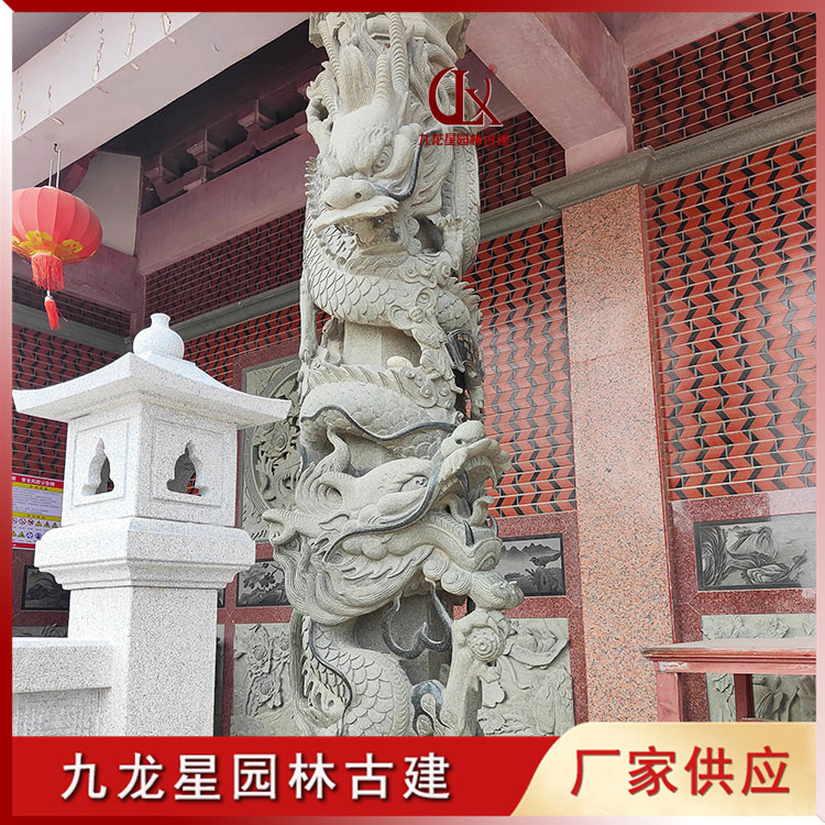 祠堂石龍柱 門口圓柱子裝飾 材質(zhì)款式可定制 九龍星