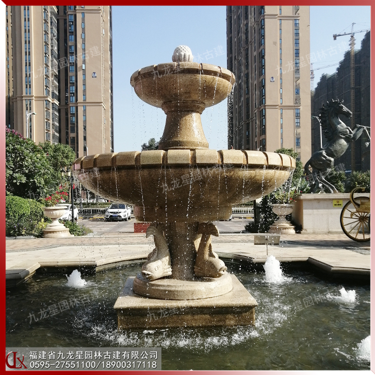埃及米黃水缽噴泉 小區(qū)石材水缽實(shí)景圖 廠家爆款