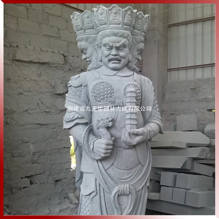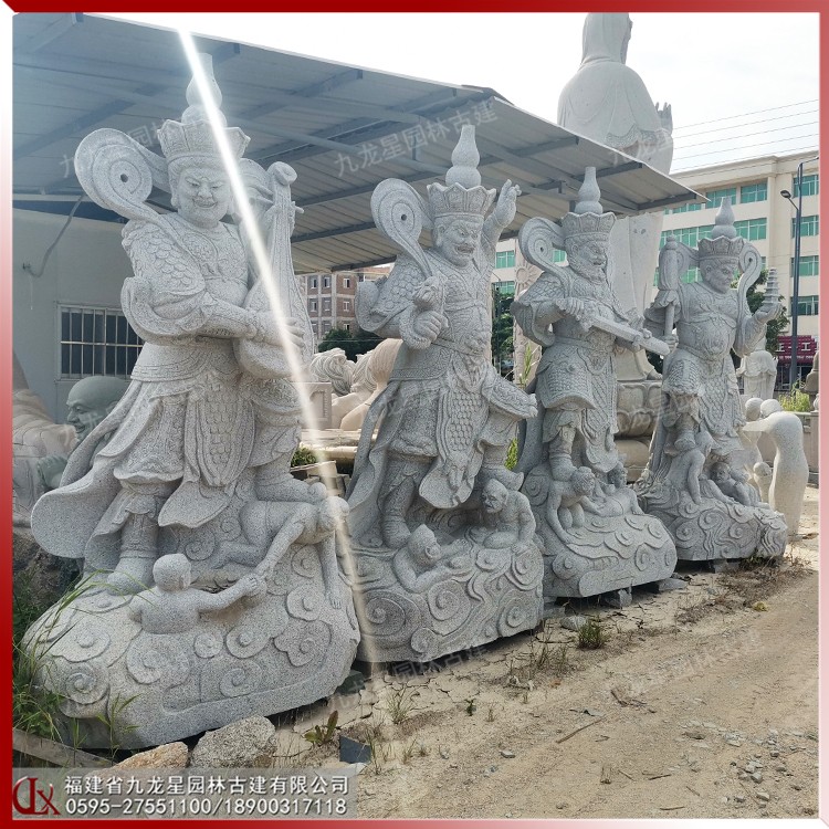制作石雕四大天王門神 寺廟守門四金剛 九龍星
