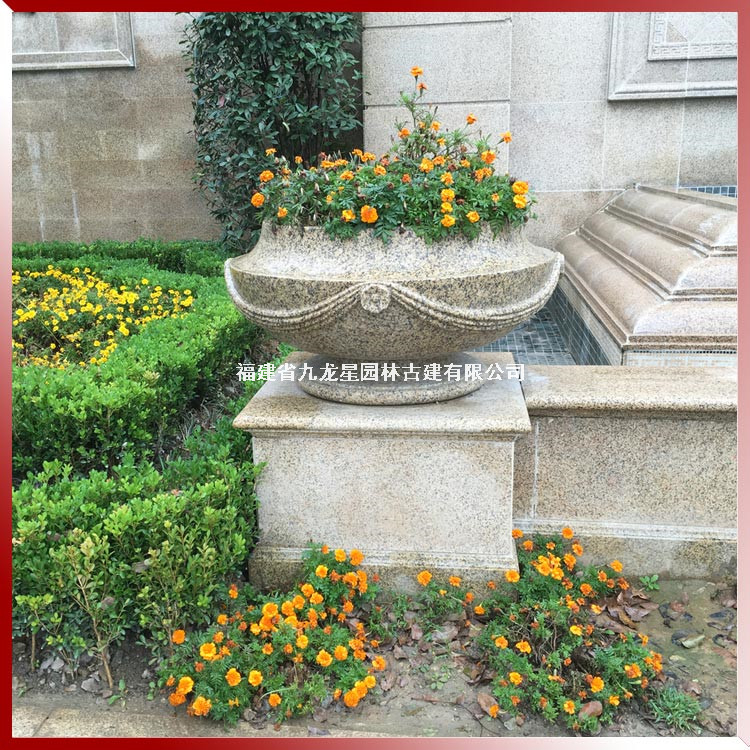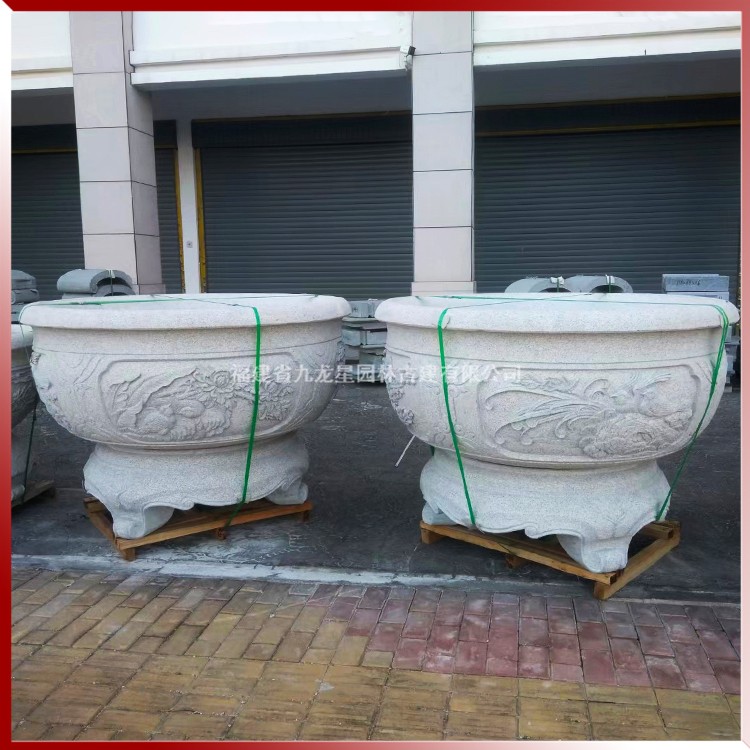 石雕花缽花盆雕刻 質(zhì)量好石雕花缽采購(gòu) 聯(lián)系九龍星