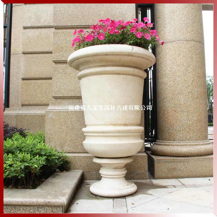 埃及米黃大理石花缽 高檔小區(qū)別墅石材花缽 造景裝飾