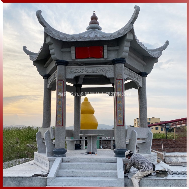 四角石亭子施工圖 石雕涼亭聯(lián)系 石雕之鄉(xiāng)九龍星園林古建