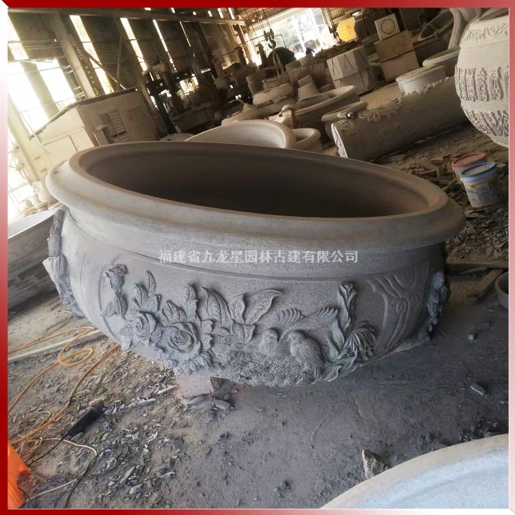 石雕花缽雕塑 精美的石雕花缽圖片 房地產(chǎn)擺件